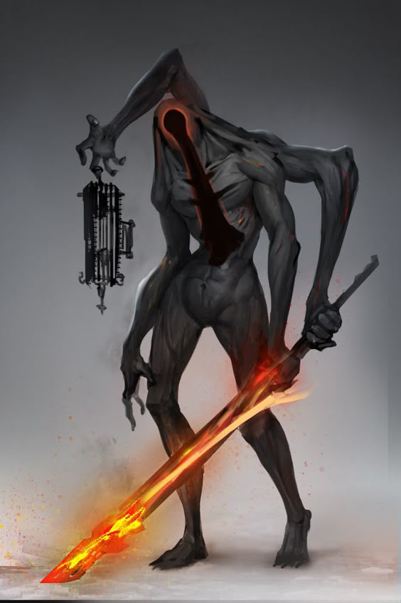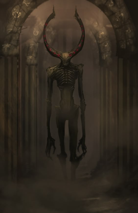 The ruler of this dimension, who usually deigns to stay back from dealing with interlopers, and this is seen only briefly in glimpses when the mists of the chamber swirl just the wrong way. His horns nearly brush the top of the vault of The Black Chamber, which is about 100 feet above. Much of the behavior of the denizens of the Chamber can be seen to simply be keeping things from becoming loud or noticeable, so the Lord remains in the dark.