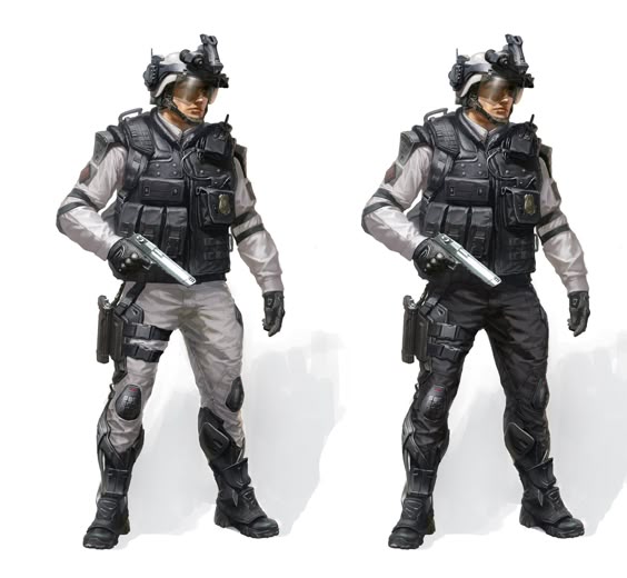 Security androids, first encountered at the doors of the base at the bottom of the long ramp: